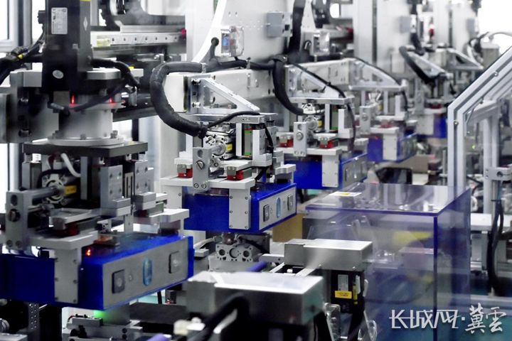 在位于沧州沧东经济开发区的远景零碳产业园内的远景动力电池超级工厂内,自动化生产线高速运转,机械臂灵巧翻飞,一块块电芯正列队下线。