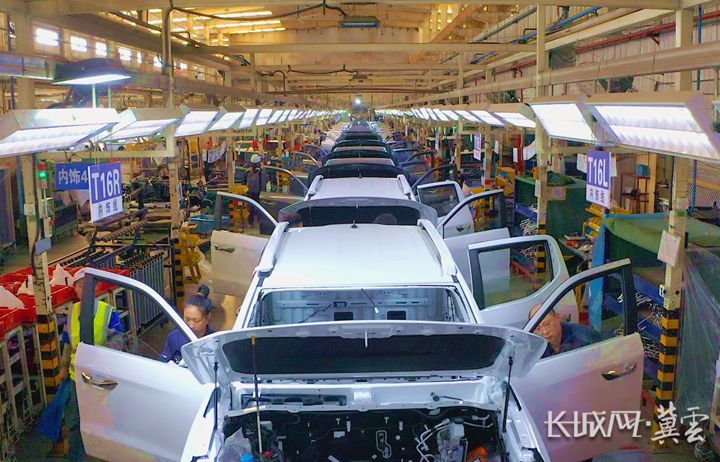 河北长安汽车有限公司总装二车间生产线,线上正在生产的是全球首款增程式皮卡车。长城网·冀云客户端记者 赵博轩 摄